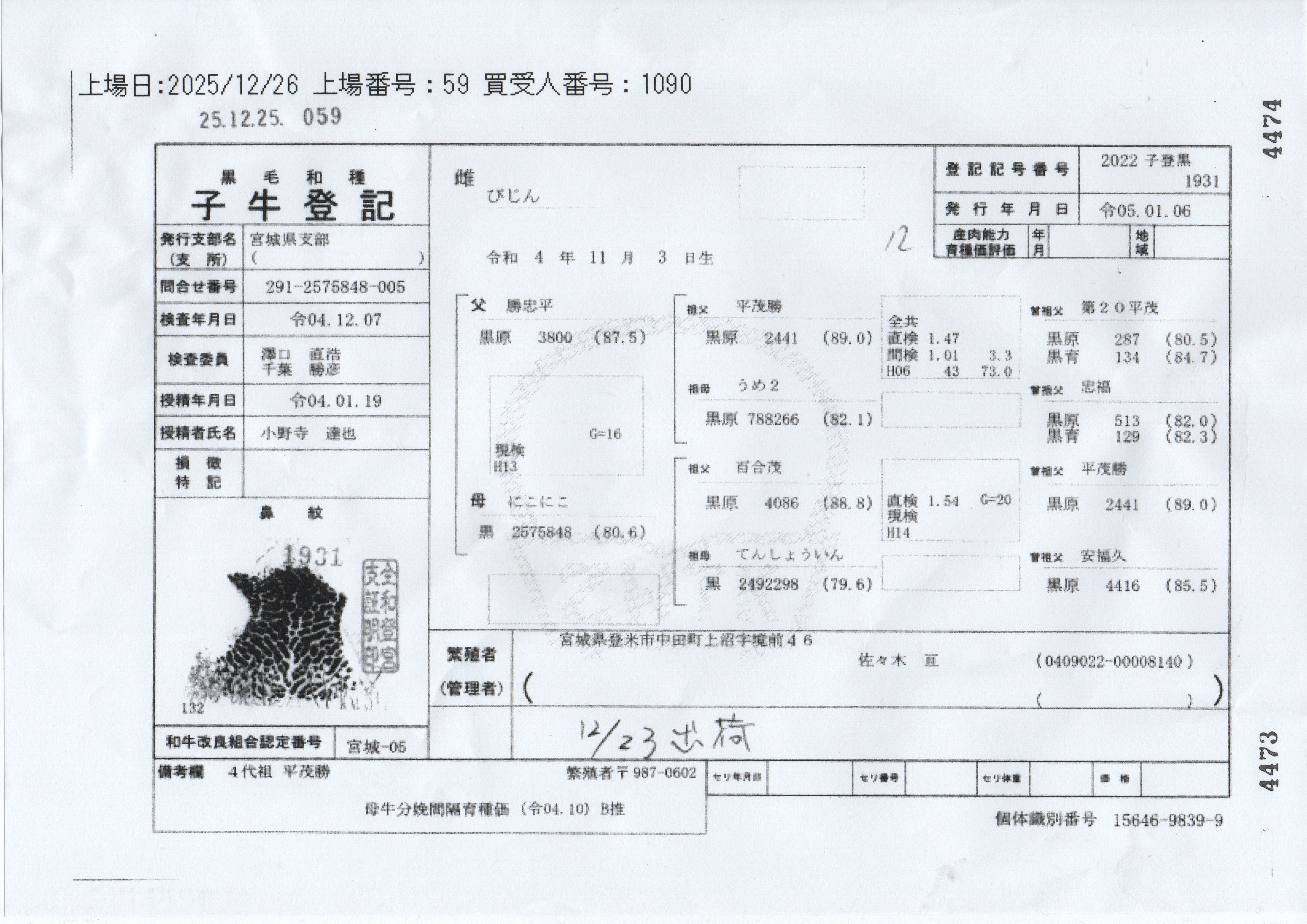お品書き お品書きTOP コースメニュー サイドメニュー ドリンクメニュー 本日ご提供の牛はこちら 本日の牛 本日ご提供の牛は「仙台牛」です。 個体識別番号 1564698399 品種 黒毛和種 月齢 37ヶ月 性別 メス 「どこで生まれ、どの生産者により育てられた牛なのか」牛の情報を個体識別番号にてご確認いただけます。 個体識別情報検索サービスはこちら コースメニュー サイドメニュー ドリンクメニュー