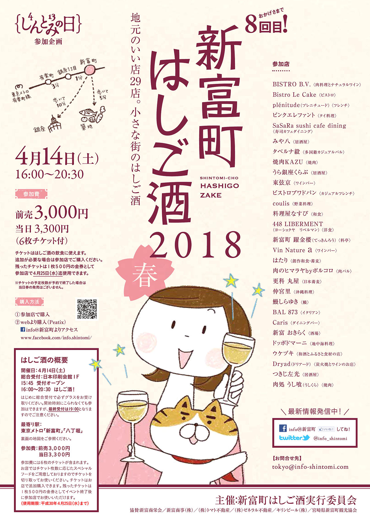 肉処うし喰は、4/14(土)に開催される「新富町はしご酒」に参加することになりました!